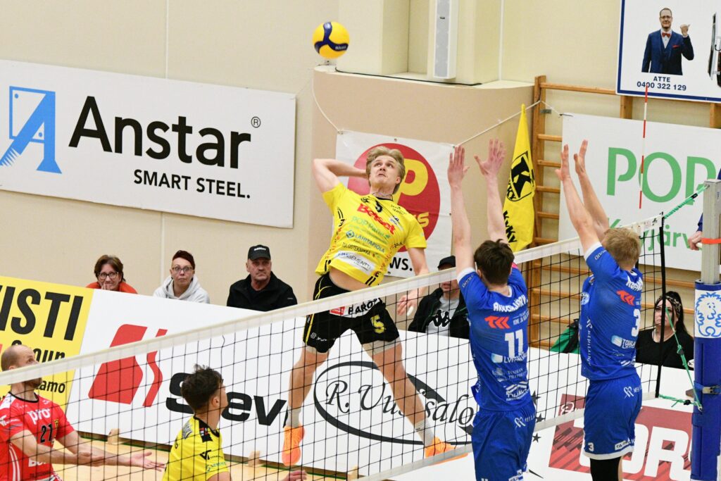 Kaikille tuttu vuoristorata on yleinen huvipuistolaite, jonka kyydissä sydämen syke kiihtyy ja adrenaliini nousee. Pelottaa ja naurattaa samaan aikaan. Tällaista oli cupin ottelussa Kyyjärvellä tänään – kolme ensimmäistä erää päättyi samoilla lukemilla. KyKy-Betset vei ensimmäisen erän 25–17, seuraavan veivät vieraat niin ikään 17–25 ja kolmannen vuorostaan KyKy 25–17. Neljättä erää tahkottiin aiempien erien tapaan lähes tasatahtiin Akaan ohjaksissa. Erän puolivälissä kotijoukkueen peli hiukan hyytyi osittain omiin virheisiin. Toisaalta Akaa teki Kyvyn pelaamisen hankalaksi laadukkailla syötöillä. Akaan Antti Taponen oli yksi Akaan kovista syöttäjistä neljännessä erässä.